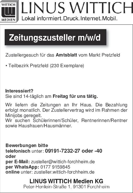 Allgemein Zusteller gesucht von Eva-Maria Alt|Veröffentlicht 5. Februar 2025-Aktualisiert 7. März 2025