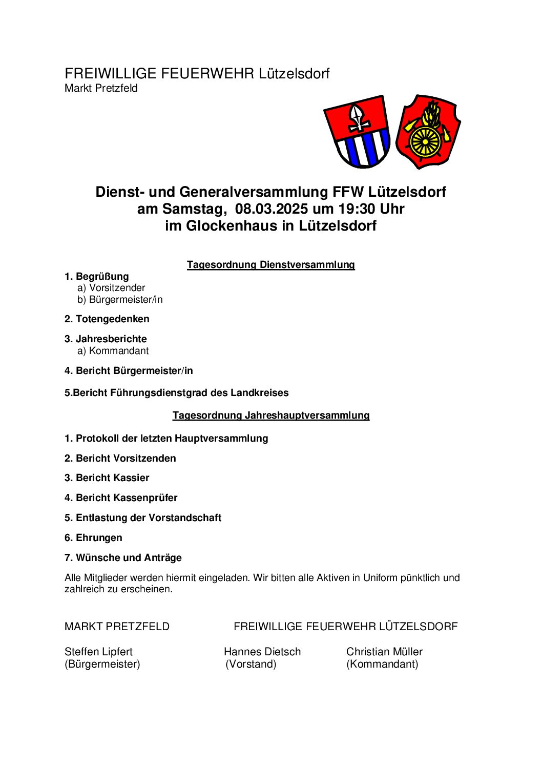 Dienst- und Generalversammlung FFW Lützelsdorf 19:30 – 20:308. März 2025 iCal Google Kalender View full calendar