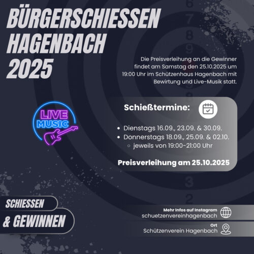 Verein Ehrungsabend Bürgerschießen von Eva-Maria Alt|Veröffentlicht 18. November 2024-Aktualisiert 29. September 2025 Ehrungsabend Bürgerschießen 19:00 – 23:0025. Oktober 2025 iCal Google Kalender View full calendar