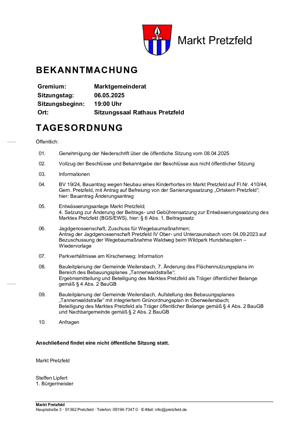Sitzung des Marktgemeinderates im Rathaus 19:00 – 20:006. Mai 2025 iCal Google Kalender View full calendar