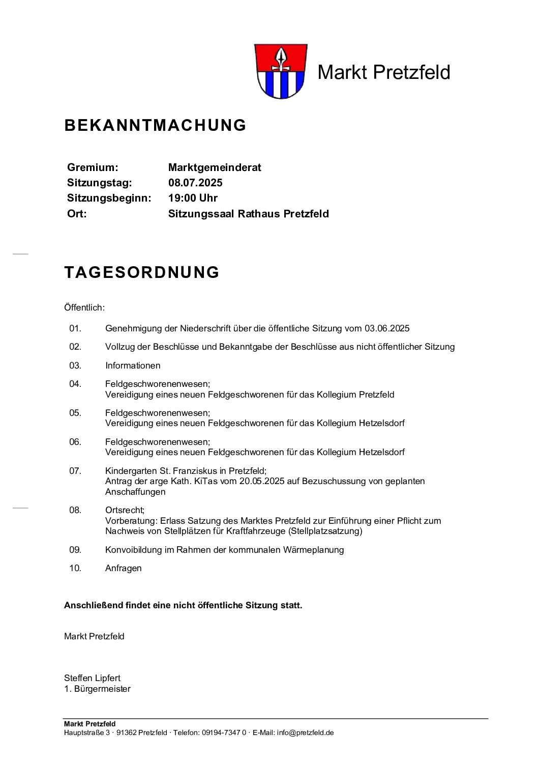 Sitzung des Marktgemeinderates im Rathaus 19:00 – 21:008. Juli 2025 Sitzung des Marktgemeinderates im Rathaus iCal Google Kalender View full calendar