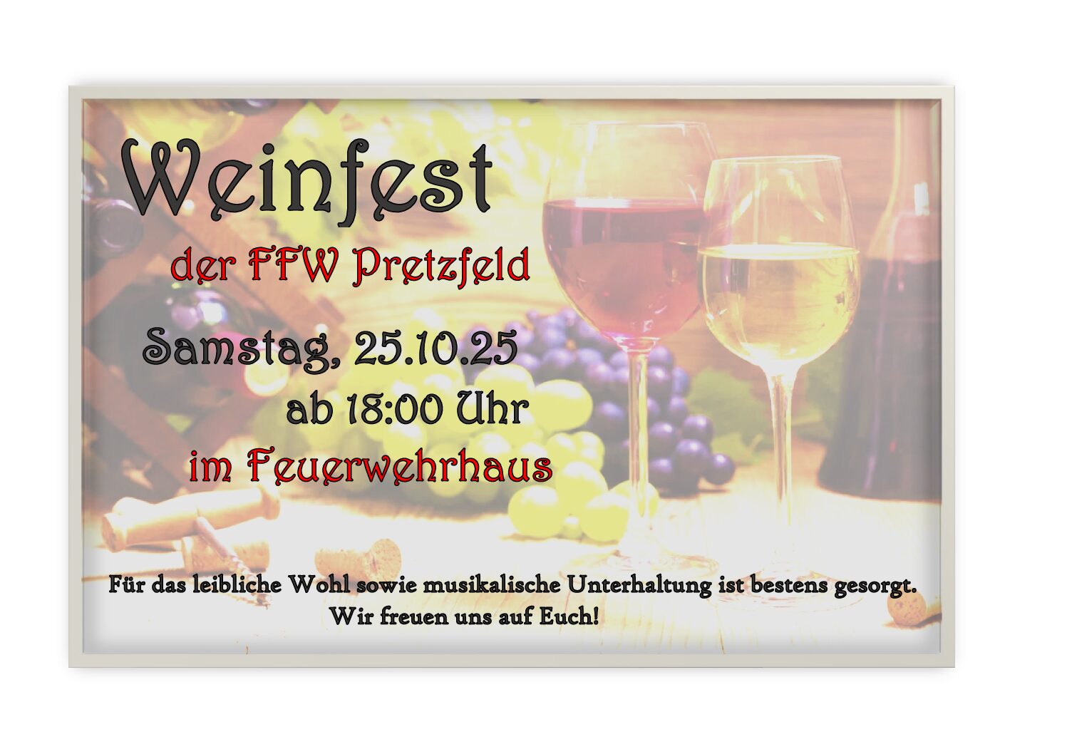 Verein Weinfest von Eva-Maria Alt|Veröffentlicht 16. Oktober 2025 Weinfest 18:00 25. Oktober 2025 iCal Google Kalender View full calendar
